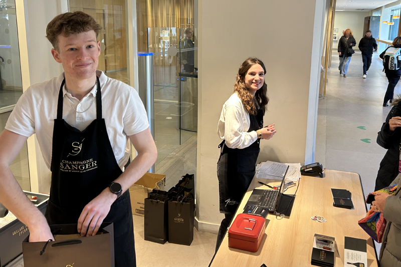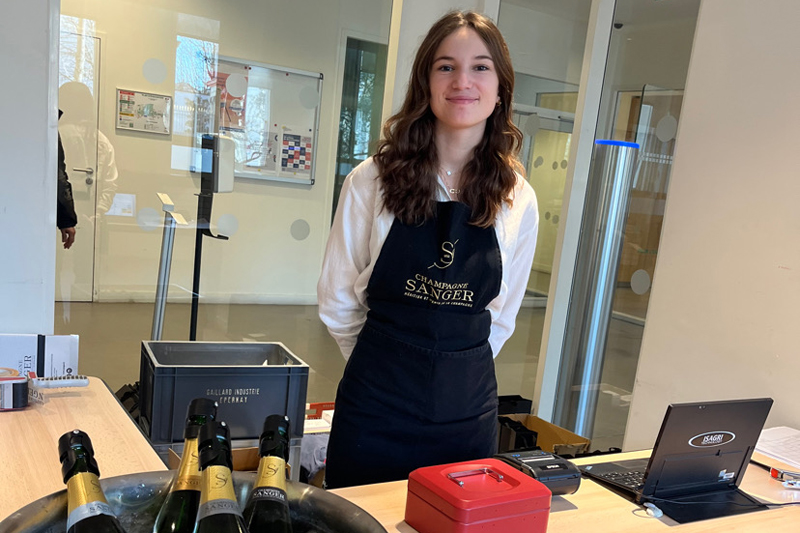 À l'occasion du Marché des Fêtes des lycées agricoles organisé par le restaurant interministériel à Paris, les étudiants en BTSA Technico-commercial Vins Bières et Spiritueux d'Avize VitiCampus (51), en partenariat avec la coopérative Sanger (structure privée créée par les anciens élèves de l'établissement) de présenter les produits aux usagers du restaurant.