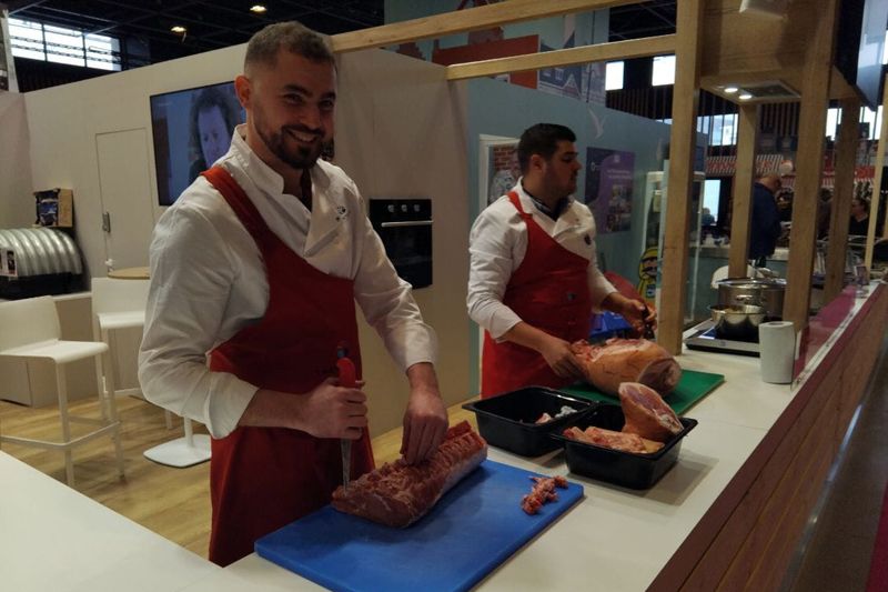 - Quentin et Vincent (pour la 2e année consécutive) qui ont eu l'honneur de réaliser des démonstrations de découpe de viandes issues de notre exploitation, cuisinées ensuite par les "Chefs en Nord" d'Hervé Duplouy,